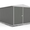 De metalen berging is voorzien van een dubbele deur aan de voorzijde waardoor de toegang tot de berging erg makkelijk is. De deuren zijn afsluitbaar, echter het slot is niet inbegrepen. Het staal van de berging is zowel aan de binnen- als buitenzijde voorzien van een laag coating waardoor de berging onderhoudsvrij is. Jij hoeft na het opbouwen dus niks meer te doen!