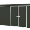 De metalen berging is voorzien van een dubbele deur én een enkele deur aan de voorzijde. Hierdoor is de toegang tot de berging heel erg gemakkelijk. Rijd de scooter makkelijk naar binnen via de dubbele deur en pak even snel een schroevendraaier via de enkele deur. Het staal van de berging is zowel aan de binnen- als buitenzijde voorzien van een laag coating waardoor de berging onderhoudsvrij is. Jij hoeft na het opbouwen dus niks meer te doen!