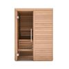 Deze kleine sauna is snel te monteren en met een eenvoudige elektrische installatie, makkelijke bediening en lage energiebehoefte, is hij eenvoudig en goedkoop in gebruik. Met twee personen zal het tussen de vier en zes uur duren om hem op te bouwen. Het thermische espenhout is behandeld met sauna wax wat zorgt voor extra bescherming tegen de hitte. De glazen deur is gemaakt van veiligheidsglas van acht millimeter dik. In tegenstelling tot hout, houdt glas geen warmte vast en resulteert in minimaal warmteverlies. Er zit een IR sensor schakelaar in voor de verlichting en zal dus aangaan als het beweging detecteert.