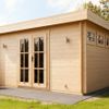 Creëer jouw ideale opslagruimte met de Ingmar blokhut met platdak. Deze veelzijdige blokhut is beschikbaar in 2 verschillende wanddiktes, waardoor je kunt kiezen wat het beste bij jouw behoeften past. Hierbij geldt hoe dikker de wand, hoe duurzamer en hoe meer isolatie. Door de drie vaste ramen en dubbele deur met glas komt er genoeg daglicht binnen. Ontdek de praktische opbergoplossing die de Ingmar blokhut biedt voor in jouw tuin.