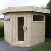 Met de Azalp Buitensauna Katsoa haal je een moderne buitensauna in je tuin die comfort en stijl perfect samenbrengt. De constructie van vurenhout met 45 mm dikke wanden zorgt voor goed warmtebehoud, met de mogelijkheid om te kiezen voor dikkere wanden voor extra isolatie. Twee ramen en de deur met veel glas zorgen voor veel natuurlijke lichtinval. Dankzij het slimme hoekontwerp past de Katsoa perfect in een hoek van de tuin, waardoor je optimaal gebruik maakt van de beschikbare ruimte. Een ideale keuze voor wie buiten wil ontspannen in eigen tuin.