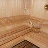 De banken en rugleuningen zijn gemaakt van Elzenhout. Deze houtsoort heeft een lichte roodachtige warme toon met weinig tot geen kwasten. Elzenhout geleidt warmte minder goed waardoor het relatief koel blijft tijdens het gebruik van de sauna, hierdoor is dit een erg prettige houtsoort om op te zitten of liggen.