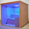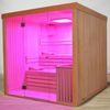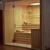 Met de Lumen haal je een elegante en lichte binnensauna in huis die direct opvalt door de royale glaswand aan de voorzijde. De stevige wanden van 77 mm dik isoleren goed en zijn verkrijgbaar in vuren- of elzenhout, afhankelijk van je voorkeur. Binnen zorgen de luxe banken voor een comfortabele en stijlvolle beleving, perfect voor een moment van rust. De combinatie van glas, hout en strak design maakt deze sauna tot een moderne toevoeging aan je interieur. De Lumen is perfect als je houdt van een stijlvolle en moderne sauna.