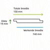Let op bij het berekenen van het aantal planken dat je nodig hebt, dat je rekent met de werkende breedte. Planken met een profiel hebben een werkende breedte. Met deze afmeting wordt er gerekend tijdens het monteren van de plank. Een andere term voor de werkende breedte is de effectieve breedtemaat. De werkende breedte komt tot stand doordat de planken elkaar overlappen.