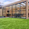 Een glasschuifwand zorgt voor beschutting van de elementen