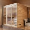 De Azalp Massieve sauna Eva Optic is een moderne binnensauna die de warme uitstraling van vurenhout combineert met een royale glazen wand voor veel lichtinval. De 45 mm dikke wanden zorgen voor een goede isolatie en een gelijkmatige warmte, ideaal voor een comfortabele saunabeleving. Dankzij de maatwerkopties sluit deze sauna perfect aan bij jouw ruimte en persoonlijke stijl. Een elegante keuze voor wie design, comfort en functionaliteit wil samenbrengen.