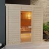 De Azalp Massieve sauna Genio is een degelijke binnensauna die de klassieke Finse beleving naar je eigen huis brengt. Uitgevoerd in vurenhout en verkrijgbaar met wanden van 45 of 60 mm dik biedt deze sauna een solide constructie en een aangename warmte. De elementopbouw maakt de montage snel en praktisch. De volledig glazen deur en ramen zorgen voor een moderne en open uitstraling, terwijl maatwerkopties ervoor zorgen dat de sauna altijd perfect aansluit bij jouw ruimte en wensen.