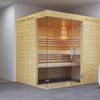 De Luja is een moderne massieve binnen sauna die direct opvalt door de stijlvolle glaswand en het lichte, open karakter. Deze Finse sauna is opgebouwd uit 45 mm dikke vurenhouten elementen. Het strakke ontwerp past perfect in een moderne badkamer of wellnessruimte, terwijl het glas zorgt voor veel lichtinval en een ruimtelijk gevoel. Door de modulaire opbouw is de Luja bovendien eenvoudig te monteren. Ideaal voor wie zoekt naar comfort, kwaliteit en een frisse uitstraling in één.