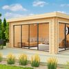 Dat een Blokhut niet saai hoeft te zijn, bewijst Blokhut München wel! Zijn unieke en eigentijdse uitstraling zorgt voor een gevoel van luxe in jouw tuin. De schuifpui zorgt voor veel natuurlijk licht en in de zomer kan je alles open zitten om van de buitenlucht te genieten.