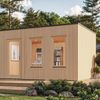 Met het Azalp Zeus geïsoleerde tuinkantoor creëer je een stijlvolle, lichte en comfortabele ruimte direct in je eigen tuin. Dankzij twee premium deuren en ramen met hoogwaardig dubbel glas geniet je van veel natuurlijk licht én profiteer je van een optimale isolatie. Het veelzijdige Zeus tuinkantoor is perfect inzetbaar als rustige thuiswerkplek, luxe gastenverblijf, atelier of ontspannende buitenwoonkamer. De opvallende Rhombusprofiel wanden geven het geheel een eigentijds en uniek karakter. Gecombineerd met volledig geïsoleerde wanden, geïmpregneerde funderingsbalken en materialen van premium kwaliteit, biedt dit model jarenlang zorgeloos gebruiksgemak en comfort.
