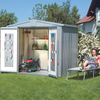 Dit tuinhuis is gemaakt van vuurverzinkt, polyamide emailgecoate staalplaten. Dat houdt in dat het staal eerst in een thermisch bad is ondergedompeld voor een zinklaag en hierna aan beide zijden voorzien van een voorbehandeling, grondlaag en uiteindelijk een polyamide ingebrande lak om hem op kleur te krijgen. Corrosie krijgt hierdoor geen kans. Het materiaal is zo sterk dat windkracht twaalf geen enkel probleem is. Ook in de winter staan jouw spullen droog want de berging is vochtwerend, vorstbestendig en het dak kan tot wel 150 kg sneeuw per vierkante meter dragen. Een erg sterk tuinhuis dus!