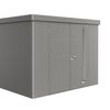 Dit tuinhuis is gemaakt van vuurverzinkt, polyamide emailgecoate staalplaten. Dat houdt in dat het staal eerst in een thermisch bad is ondergedompeld voor een zinklaag en hierna aan beide zijden voorzien van een voorbehandeling, grondlaag en uiteindelijk een polyamide emailcoat om hem op kleur te krijgen. Corrosie krijgt hierdoor geen kans. Het materiaal is zo sterk dat windkracht twaalf geen enkel probleem is. Ook in de winter staan jouw spullen droog want de berging is vochtwerend, vorstbestendig en het dak kan tot wel 150 kg sneeuw per vierkante meter dragen. Een erg sterk tuinhuis dus!