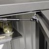 Deze tuinkast wordt standaard geleverd met een schappenset met 2 schappen en handig ophangsysteem met 6 haken aan de binnenkant van de deuren die handig te openen en sluiten zijn met behulp van gasveren. Eventueel kan je nog een extra schappenset bestellen.