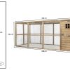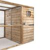 Houten dierenren met een afmeting van 448 x 179 x 183 cm. Het is mogelijk deze ren later nog uit te breiden met losse panelen. De ren is voorzien van een groot nachthok (met doorgang voor vogels), een sluis, 19 x 19 x 1,45 mm gaas en gegalvaniseerd hang en sluitwerk. Deze houten dieren verblijven worden op afspraak in gemonteerde panelen bij u thuis geleverd. Met de handleiding die per e-mail naar u toe gestuurd wordt is het monteren een fluitje van een cent.