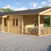 Wil je graag een tweede woning op een prachtige vakantiebestemming en lijkt een chalet jou wel wat? Dit ruime chalet heeft veel ruimtes, welke zich allemaal op de begane grond bevinden, een kleine overkapping boven de voordeur en een grote L-vormige overkapping over de gehele lengte en breedte.
