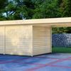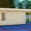 Tuinhuis Berlijn is het grootste tuinhuis van de serie en heeft een afmeting van 500x300 cm. Dit tuinhuis is vervaardigd uit blank* Vurenhout. De Berlijn is te bestellen als los tuinhuis, maar kan ook gecombineerd worden met een luifel van 200, 300, 400 of 500 cm. Wil je graag een afgesloten overkapping creëren? Kies dan ook voor een achter- en/of zijwand! De zijwand is 300 cm en past daarbij bij iedere maat luifel. De achterwand is 200 cm, kies daarom bij grotere maten luifels voor twee of meer achterwanden.