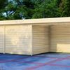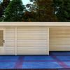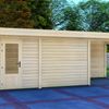 Tuinhuis Berlijn is het grootste tuinhuis van de serie en heeft een afmeting van 500x300 cm. Dit tuinhuis is vervaardigd uit blank* Vurenhout. De Berlijn is te bestellen als los tuinhuis, maar kan ook gecombineerd worden met een luifel van 200, 300, 400 of 500 cm. Wil je graag een afgesloten overkapping creëren? Kies dan ook voor een achter- en/of zijwand! De zijwand is 300 cm en past daarbij bij iedere maat luifel. De achterwand is 200 cm, kies daarom bij grotere maten luifels voor twee of meer achterwanden.
