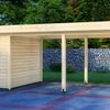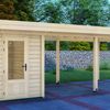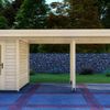 Tuinhuis Bremen is het kleinste tuinhuis van de serie en heeft een afmeting van 200x300 cm. Dit tuinhuis is vervaardigd uit blank* Vurenhout. De Bremen is te bestellen als los tuinhuis, maar kan ook gecombineerd worden met een luifel van 200, 300, 400 of 500 cm. Wil je graag een afgesloten overkapping creëren? Kies dan ook voor een achter- en/of zijwand! De zijwand is 300 cm en past daarbij bij iedere maat luifel. De achterwand is 200 cm, kies daarom bij grotere maten luifels voor twee of meer achterwanden.