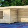 Tuinhuis Keulen heeft een afmeting van 300x300 cm. Dit tuinhuis is vervaardigd uit blank* Vurenhout. De Keulen is te bestellen als los tuinhuis, maar kan ook gecombineerd worden met een luifel van 200, 300, 400 of 500 cm. Wil je graag een afgesloten overkapping creëren? Kies dan ook voor een achter- en/of zijwand! De zijwand is 300 cm en past daarbij bij iedere maat luifel. De achterwand is 200 cm, kies daarom bij grotere maten luifels voor twee of meer achterwanden.