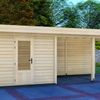 Tuinhuis Keulen heeft een afmeting van 300x300 cm. Dit tuinhuis is vervaardigd uit blank* Vurenhout. De Keulen is te bestellen als los tuinhuis, maar kan ook gecombineerd worden met een luifel van 200, 300, 400 of 500 cm. Wil je graag een afgesloten overkapping creëren? Kies dan ook voor een achter- en/of zijwand! De zijwand is 300 cm en past daarbij bij iedere maat luifel. De achterwand is 200 cm, kies daarom bij grotere maten luifels voor twee of meer achterwanden.