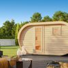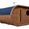 De Barrel Ovaal is een bijzondere buitensauna van vurenhout die direct in het oog springt door zijn ovale barrelvorm. Deze vorm zorgt niet alleen voor een efficiënte warmtecirculatie maar geeft de sauna ook een unieke uitstraling in de tuin. Verkrijgbaar in diverse uitvoeringen zoals een compacte standaardversie, een variant met terras, een uitvoering met twee kamers of zelfs een model met twee kamers en terras. Zo stem je de sauna eenvoudig af op jouw wensen en ruimte. Een stijlvolle keuze voor wie functionaliteit en design wil combineren.