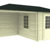 Deze blokhut is ook geverfd of in onbehandeld vurenhout te bestellen (zie het menu of pas uw selectie aan).