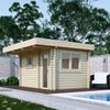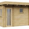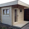 De Interflex buitensauna 3432 combineert compactheid met luxe, ideaal voor een ontspannende wellnesservaring in eigen tuin. Het saunagedeelte is efficiënt ontworpen en voorzien van een klein raam, wat zorgt voor natuurlijke lichtinval en een knusse sfeer. Naast de sauna biedt de kleine voorruimte extra comfort, perfect om je om te kleden of even af te koelen, en is uitgerust met een groot stolpraam voor een open, lichte uitstraling. Met stevige wanden van 70 mm dik biedt de sauna optimale isolatie en duurzaamheid. Daarnaast is de 3432 uitgerust met een kleine voorluifel en is hij beschikbaar met zowel een platdak als zadeldak, zodat hij in elke tuin tot zijn recht komt.
