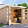 De Jupiter serie van Karibu is een uniek tuinhuis waarbij het hout en metaal combineert. Dit zorgt voor een moderne look en feel. Het tuinhuis heeft een platdak en een wanddikte van 19mm waardoor het ideaal is om als opslag van tuingereedschap, fietsen of als klusruimte te gebruiken.