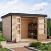 De Jupiter serie van Karibu is een uniek tuinhuis waarbij het hout en metaal combineert. Dit zorgt voor een moderne look en feel. Het tuinhuis heeft een platdak en een wanddikte van 19mm waardoor het ideaal is om als opslag van tuingereedschap, fietsen of als klusruimte te gebruiken.