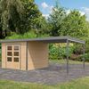 Karibu 12435 Pluto 6 tuinhuis met overkapping - vuren|grijsaluminium