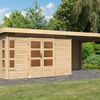 De Kastorf serie van Karibu is een modern tuinhuis met lessenaarsdak en een wanddikte van 28mm wat ideaal te gebruiken is als opslag van tuingereedschap, fietsen of als klusruimte te gebruiken.