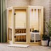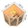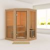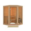 De Karibu Yuma binnen sauna is een compacte, stijlvolle hoeksauna stijlvolle sauna met één comfortabele bank, perfect voor twee personen om te zitten. Het strakke ontwerp wordt versterkt door de twee volledig glazen wanden en een glazen deur, wat niet alleen zorgt voor een moderne, minimalistische uitstraling, maar ook een open en ruimtelijk gevoel geeft.