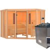 In een sauna kunnen verschillende soorten kachels worden geplaatst. Er zijn vrijstaande kachels en kachels die aan de wand worden gemonteerd. Er zijn dan kachels met ‘interne besturing’. Deze kachels worden aangestuurd met (draai)knoppen die op de saunakachel zitten. Ook zijn er kachels met ‘externe besturing’, deze worden door een controle unit aangestuurd wat aan de buitenzijde van de sauna wordt gemonteerd. Er zijn dan ook verschillende soorten besturingen beschikbaar. Het belangrijkste is een kachel te kiezen met het juiste vermogen. Een kachel met te weinig vermogen zal resulteren in een sauna die langzaam of niet genoeg opwarmt.Omdat er veel opties en mogelijkheden zijn hebben wij bij de optionele extra's van de sauna een selectie van de juiste saunakachels die wij adviseren bij de sauna.Bij deze sauna van 7,3 m3 adviseren wij een saunakachel van 9.0kW aan.