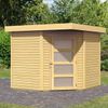 Verken de mogelijkheden van de Schwandorf serie van Karibu, een modern ontworpen hoek tuinhuis met een platdak. Dit tuinhuis is ideaal voor de opslag van al je spullen. Combineer het gemak van een berging met de ontspanning van een overkapping door de Schwandorf te bestellen met overkapping. Zo kun je het hele jaar door ontspannen in je tuin.