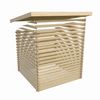 Dit model is volledig gemaakt van vurenhout. Vurenhout is een heel makkelijk te bewerken hout dat erg sterk is. Vurenhout heeft door zijn langzame groei een fijne vezelstructuur en bevat weinig hars en heeft kleine, vaste noesten. Wij raden sterk aan om vurenhout te behandelen met een beits om het hout beter te beschermen tegen de verschillende weersomstandigheden.