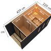 De Karibu Miramar buitensauna is een zeer moderne sauna met drie banken, geschikt voor vier personen. Dit strakke model heeft een plat dak met een klein overkapt gedeelte met stijlvolle glazen schuifdeur. Deze deur zorgt voor veel natuurlijk licht en creëert een naadloze overgang van buiten naar binnen. De sauna is ook voorzien van een voorruimte, die niet alleen ruimte biedt om je om te kleden en af te koelen zonder direct de hitte te verlaten, maar ook helpt om tocht te voorkomen bij het openen van de deur, waardoor de sauna warm en comfortabel blijft.