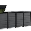 Deze moderne containerberging is geschikt voor vier 240L containers, ook wel kliko’s genoemd. Hij is hiermee niet alleen handig maar ook nog eens een eyecatcher in jouw (voor)tuin. De unieke Evotech+ technologie van Keter zorgt ervoor dat deze tuinkast oogt en voelt als echt vergrijsd of antraciet geschilderd hout echter is deze gemaakt van kunststof en heeft hiermee vele voordelen.