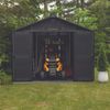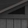 Dankzij de 13 m² opslagruimte biedt dit tuinhuis voldoende plek voor zowel grote als kleine spullen. De brede dubbele deuren (152,5 cm breed en 183,5 cm hoog) maken het eenvoudig om grote objecten zoals een zitmaaier, barbecue of tuinmeubelen naar binnen te rijden. Het slimme ontwerp maakt een flexibele indeling mogelijk, waardoor je de ruimte optimaal kunt benutten. Daarnaast zorgen geïntegreerde ventilatieroosters voor een constante luchtcirculatie, wat helpt om vochtproblemen te voorkomen.
