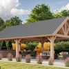 De overkapping Zeno met zadeldak van Kirk & Michaels is een echte blikvanger in de tuin die voor verschillende doeleinden gebruikt kan worden. Het frame bestaat uit geschaafd Douglashout met robuuste staanders van 19x19 cm en kan met of zonder schoren besteld worden. Het traditionele zadeldak geeft het een authentieke uitstraling, en met een nokhoogte van bijna 4 meter creëert het een gevoel van ruimte.