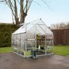 De wanden en het dak van de kas is gemaakt van polycarbonaat. Dit wordt erg veel gebruikt voor tuinkassen, omdat het een erg sterk en lichtgewicht kunststof is. Het beschermt de planten ook tegen schadelijk uv-stralen. Net als het aluminium frame zijn de wand- en dakpanelen onderhoudsvrij. Zo hoef je je geen zorgen te maken over de kas en kun jij je volledig focussen op de planten.