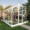 De kas is uitgerust met dakgoten en twee regenpijpen, waarmee je regenwater kunt opvangen. Met een nokhoogte van 245 cm biedt deze kas een ruimtelijk en open gevoel, ideaal voor comfortabel kweken.