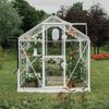 De kassen in de Serie Mary zijn voorzien van praktische functies zoals dakgoten met regenpijpen voor wateropvang en meerdere dakramen voor uitstekende ventilatie. Het 3 mm dikke veiligheidsglas, stevig bevestigd met dempend foamtape en PVC beglazingstrips, garandeert een duurzame en veilige kweekomgeving.