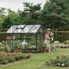 Tuinkas Mary van Royal Well is een elegante kas die niet alleen genoeg ruimte biedt om te kweken, maar ook om te ontspannen. Dit model met puntdak en schuifdeur met haakslot combineert functionaliteit met stijl. Het 3 mm dikke veiligheidsglas wordt bevestigd met dempend foamtape aan de binnenzijde en PVC beglazingstrips aan de buitenzijde, die eenvoudig te installeren zijn en naadloos aansluiten bij de kleur van de profielen. De meegeleverde, stevige fundering zorgt voor een stabiele basis, geschikt voor zowel onverharde als verharde ondergronden.