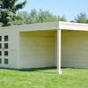 Bent u op zoek naar een blokhut met een overkapping zodat u ook buiten enkele spullen kunt opslaan of waar u heerlijk op een overdekt terras kan zitten? Is een blokhut met een modern uiterlijk en een strakke hoekverbinding iets dat in uw staatje past? Dan is de Azalp blokhut Ligne Ultra het model dat u zoekt. Dit tuinhuis past met zijn robuuste uiterlijk goed in uw moderne tuin.