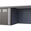 De Classico met lounge van Telluria is een luxe metalen tuinhuis. Het tuinhuis is ideaal voor het opbergen van gereedschap, fietsen of om er een klusruimte van te maken. De ruime overkapping zorgt voor de ideale plek om onder te ontspannen en zo heel het jaar door van je tuin te genieten. De twee vaste ramen in de overkapping zorgen voor extra lichtinval en een meer open gevoel.