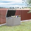 Het deksel opent soepel met behulp van hydraulische veren en is stevig genoeg om als zitplaats te gebruiken, wat handig kan zijn wanneer je extra zitruimte nodig hebt in de tuin. De box is voorzien van handgrepen aan de zijkant voor eenvoudige verplaatsing, en kan worden afgesloten met een hangslot (niet inbegrepen) om je spullen veilig op te bergen.