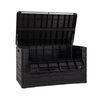 Het ontwerp is uitgevoerd in stevig kunststof met een houtnerfstructuur, wat zorgt voor een moderne en natuurlijke look. De box is bestand tegen verschillende weersomstandigheden en kan het hele jaar buiten blijven staan. Dankzij het verstevigde deksel kun je de box ook gebruiken als zitplaats, wat ideaal is voor extra zitplaatsen op je terras of balkon.