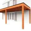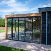 De Modena veranda van Trendhout is een luxe en moderne aanbouwveranda, gemaakt van hoogwaardig Douglashout. De robuuste palen van 14.5 x 14.5 cm en de stevige ligger met een hoogte van 24 cm zorgen voor een stevige en robuuste uitstraling. Doordat er gebruik wordt gemaakt van slimme hoekverbindingen zijn er vanaf de buitenzijde geen schroeven zichtbaar, dit zorgt voor een mooie en strakke afwerking. De Modena is beschikbaar in diverse breedtes en met een diepte van 3, 4 of 5 meter, hierdoor is er enorm veel mogelijk met deze constructie en het gebruik ervan.