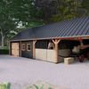 De Zadeldak Select Landelijk van Trendhout is een robuust buitenverblijf met stevige staanders van 19 x 19 cm. Het traditionele zadeldak met gordingkap en schoren geven het een authentieke uitstraling, terwijl het extra hoge dak met een nokhoogte tot wel 5 meter een gevoel van ruimte creëert. Dit buitenverblijf is beschikbaar in verschillende breedtes tot 24 meter en een diepte van 4 tot wel 7 meter! Hierdoor is er enorm veel mogelijk met deze constructie en het gebruik ervan. Daarnaast is zo ontworpen dat het erg geschikt is voor het toepassen van wand- en dakisolatie.
