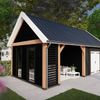 Zadeldak Modern is voorzien van een strak afgewerkt dakoverstek. De boeidelen zijn apart van de constructie in wit, zwart of onbehandeld Douglas te bestellen. Wil je een traditionele afwerking, kies dan voor de Select Landelijk variant van dit buitenverblijf.